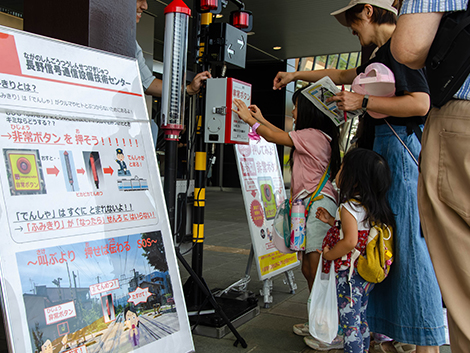 今回は、いつ起こるか分からない地震に対して市民一人ひとりが一斉に行う初動訓練(シェイクアウト)を実施し、「しゃがむ、隠れる(頭を守る)、じっとする」といった命を守る安全行動を1分間行っていただきました。