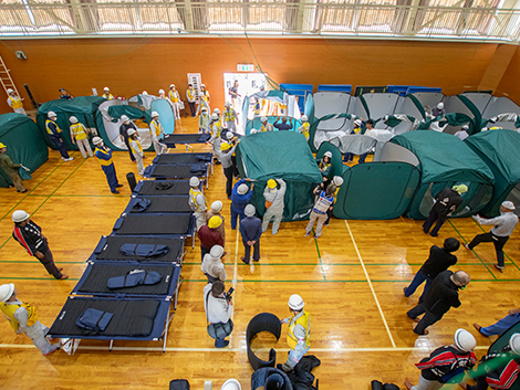 今回の訓練は「大地震が発生し、飯山観測所では震度6強を観測、市内全域で家屋の倒壊、火災等甚大な被害が発生した」との想定で行われました。