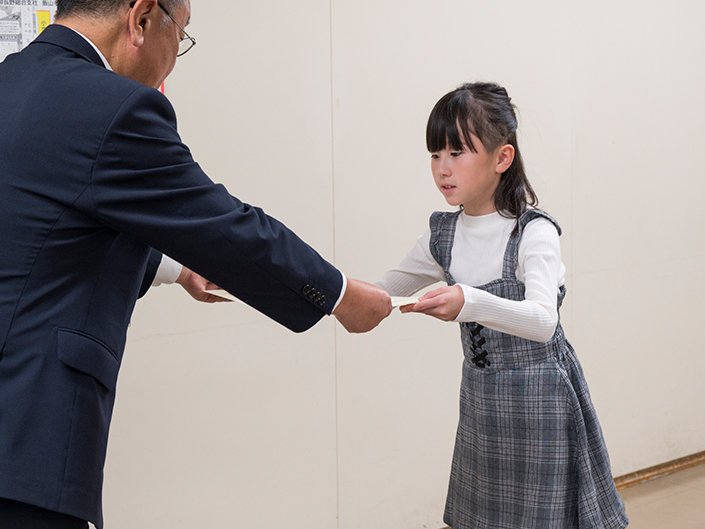 令和7年(2025年)10月23日に、飯山市と包括連携協定を結んでいる、第一生命保険株式会社が、包括連携協定の取り組みの一環として「夏休みこどもミニ作文コンクール表彰式」を開催しました。表彰式では、市内小学校から4名の児童(城北小2名、秋津小2名)が表彰され、賞状と記念品が贈られました。