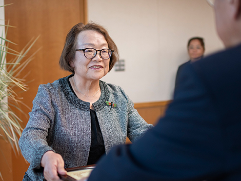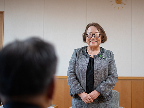 令和7年(2025年)10月24日、教育長職務代理者を退任された吉越 邦榮(よしごえ くにえ)さんに江沢市長から感謝状を、平野教育委員からは花束を手渡しました。吉越さんは、平成29年から2期8年間教育長職務代理者を務められ、江沢市長から感謝の言葉が送られました。吉越さんからは、「これまで、困難なこともあったが、多くの方のサポートをいただきながら、着々と事業を進めていただいた。あらためて感謝したい。課題は多いが、今後も子どもたちのためにがんばっていただきたい。」と退任にあたり、あいさつしました。