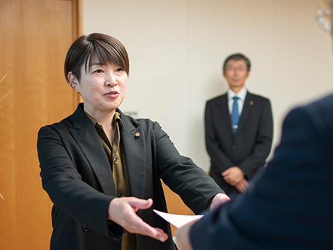 令和7年(2025年)6月24日、飯水地区保護司会 江澤一遠 会長から江沢市長に第75回“社会を明るくする運動”内閣総理大臣メッセージの伝達が市役所で行われました。“社会を明るくする運動”は、すべての国民が、犯罪や非行の防止と立ち直りについて理解を深め、それぞれの立場において力を合わせ、明るい地域社会を築くための全国的な運動です。江澤会長は「幸福の黄色い羽根のもと、多様な背景を持つ人々が、理解し合い、支え合うことによって、犯罪や非行のない明るい地域社会が実現するよう取り組んでまいりますので、皆様のご協力をお願いしたい」と大臣メッセージを読み上げ、伝達しました。