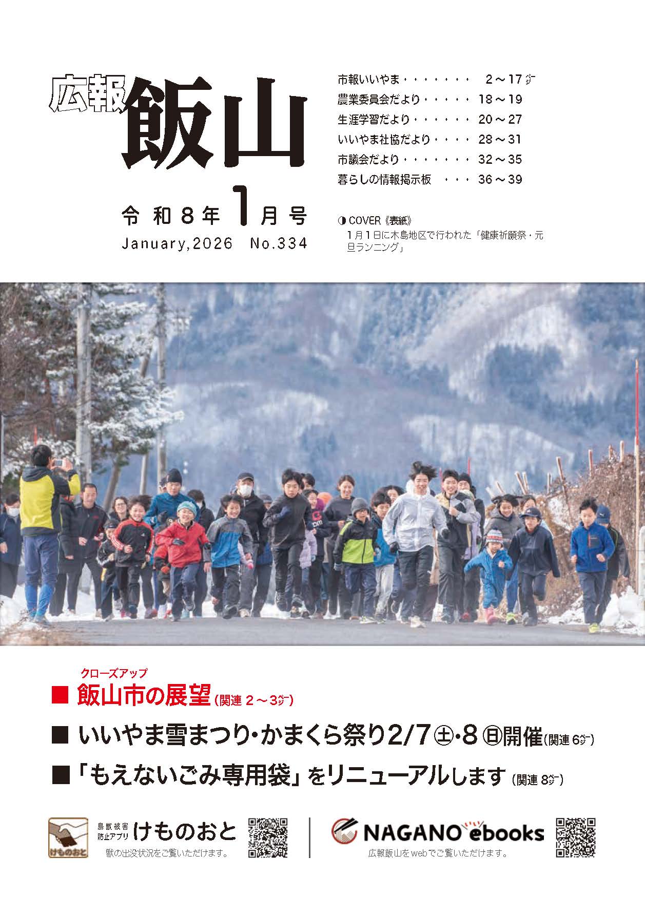 毎月15日に発行している飯山市の広報紙「広報飯山」をご覧いただけます。