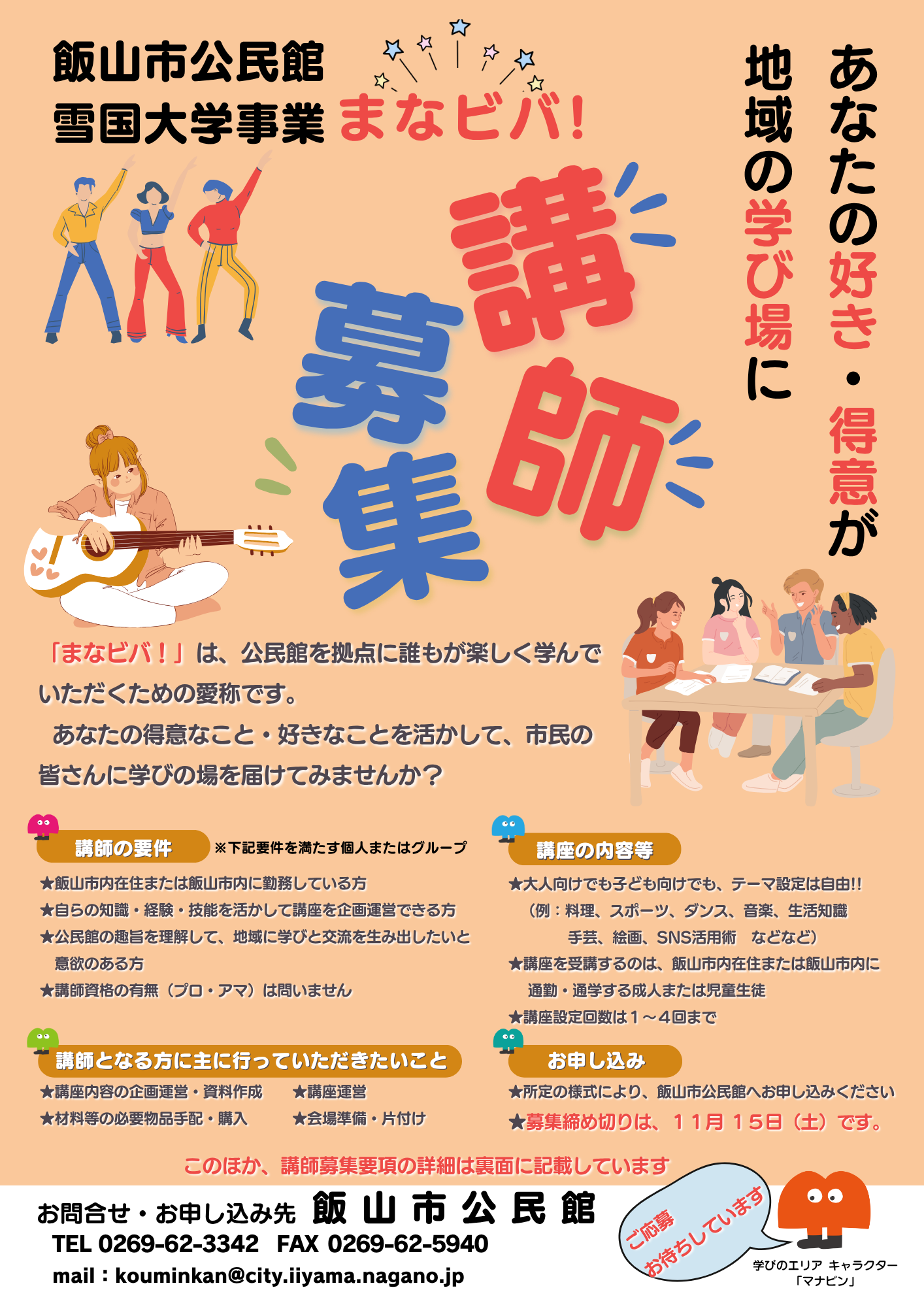 飯山市公民館 「まなビバ!」講師募集のお知らせ