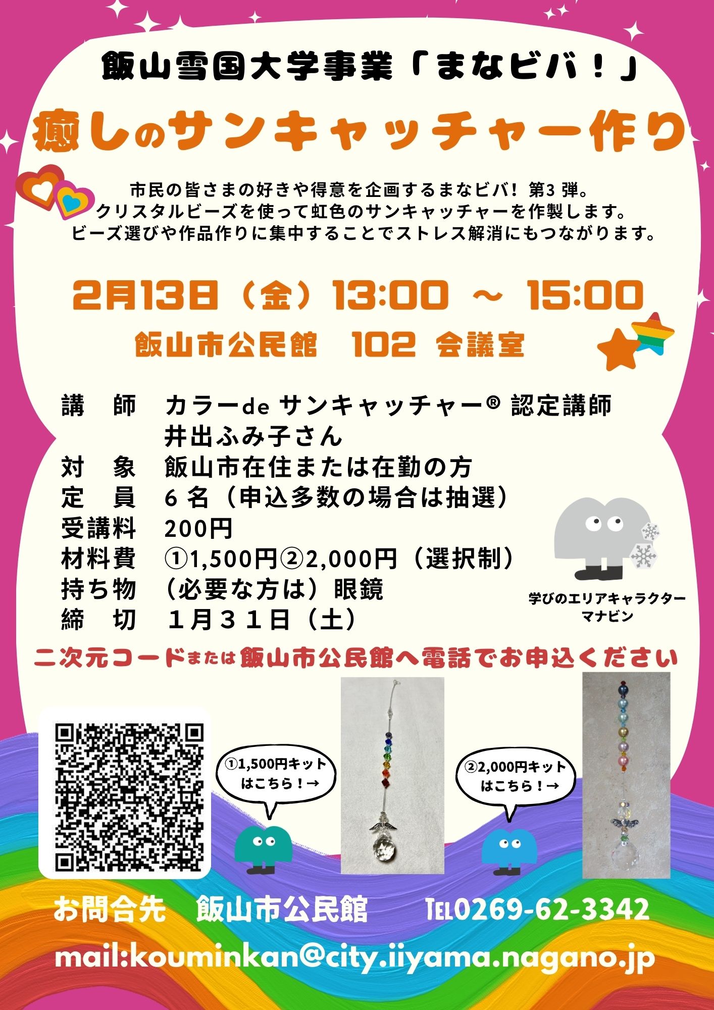 飯山雪国大学まなビバ!「癒しのサンキャッチャー作り」参加者募集のお知らせ