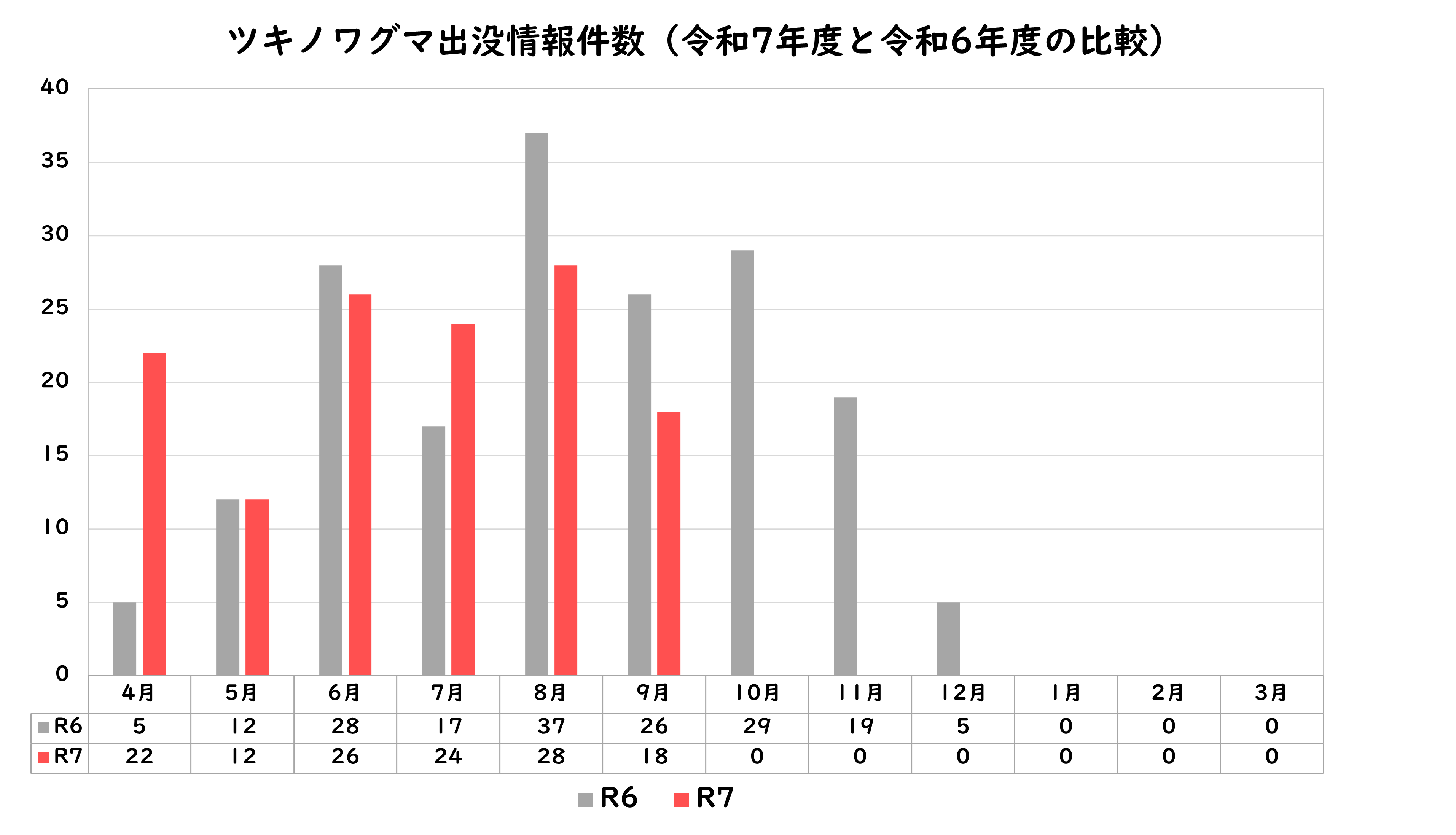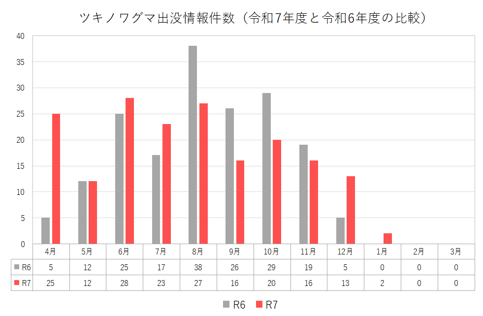 ※下のグラフは、今年度における前月までの出没状況及び昨年度との比較です。