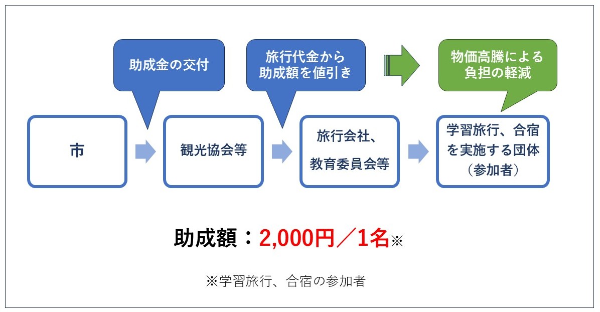 学習旅行または合宿の参加者1名につき2,000円