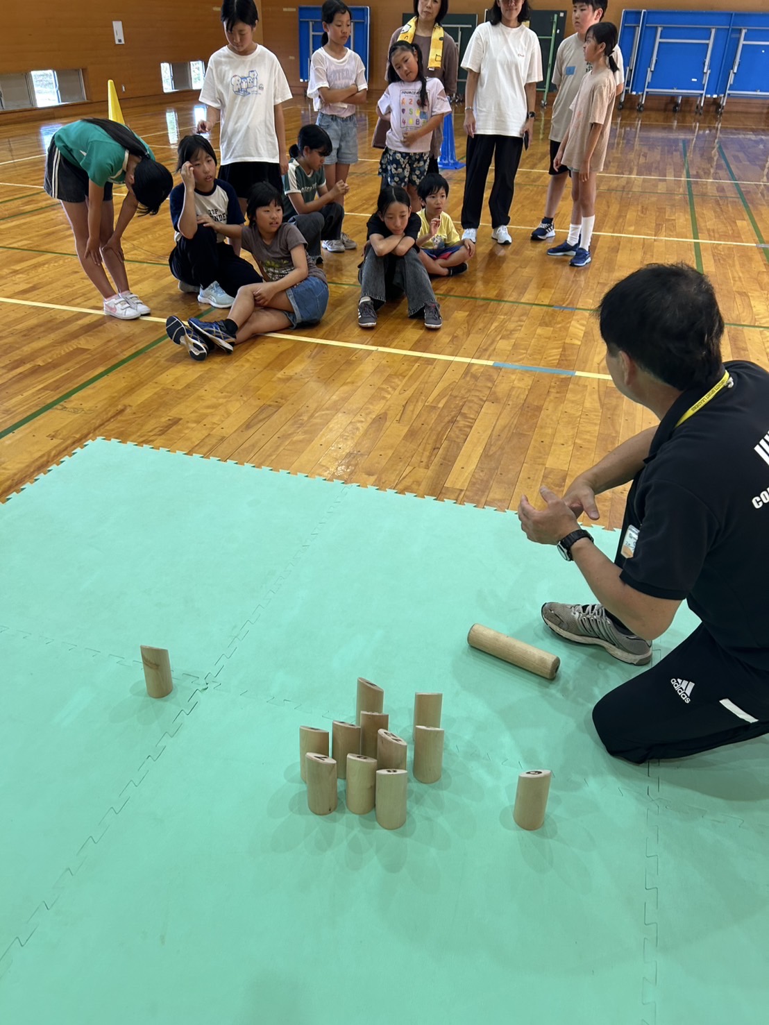 小学生を対象にボッチャとモルックの指導を行いました。ルールをしっかり理解し、楽しくプレーしていました。