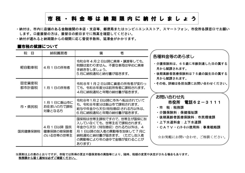 トップページ » 市役所の組織機構 » 税務課 » 収税係 » 納期一覧